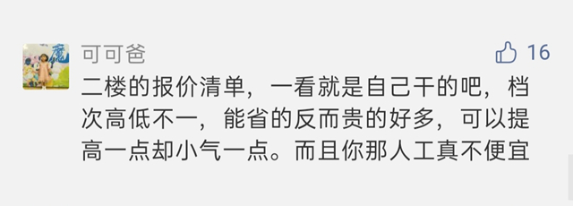 底下有其他人评论:“这份清单,感觉像是自己干的,档次高低不一,能省的反而贵的好多,可以提高一点却小气一点。”